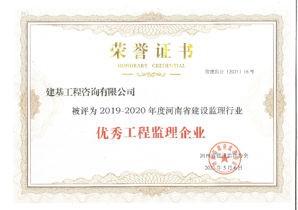 • 被河南建設監理行業評為2019-2020優秀工程監理企業
